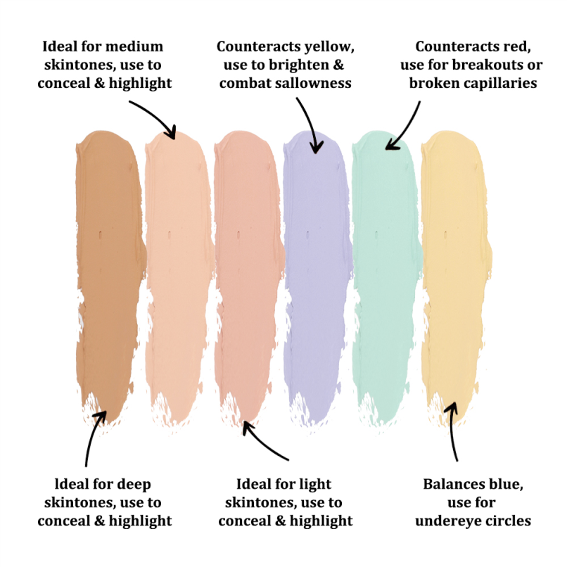 A skin palette of four groups concealers & contour shades. They can be used individually or combined to match any skin tone and suited for all skin types.
