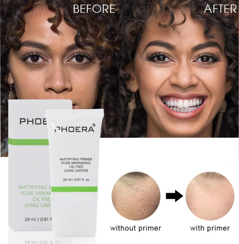 This PHOERA Face Foundation Primer Makeup enriched with a unique transparent silicone gel base, and Vitamin A,C & E, Pore Minimizing Foundation Primer helps prevent the loss of hydration throughout the day, which keeps the skin looking young and fresh.